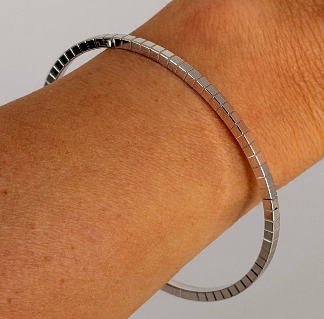 Debuted in 1999, Chopard’s Ice Cube collection has always felt innately modern – a result of its sharp, squared aesthetic, inspired by tiny blocks of ice. With abundant facets and perfect geometry, this white gold bangle catches the light in the same way that sunlight reflects off frozen water, translating this natural moment into one which plays out endlessly as part of your jewellery rotation.